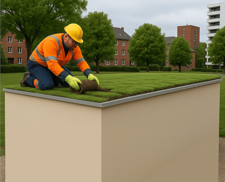 Dach- und Fassadenbegrünung als sichtbares Zeichen nachhaltiger Energieinfrastruktur.
